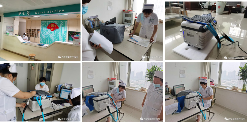 2021年7月12日上午,西安藍(lán)茗醫(yī)療科技有限公司第一營銷中心大區(qū)總監(jiān)郭銘遠(yuǎn)抵達(dá)蓬萊市中醫(yī)院,在醫(yī)院對(duì)醫(yī)護(hù)人員對(duì)我公司生產(chǎn)的加壓冷熱敷機(jī),進(jìn)行了詳細(xì)的裝機(jī)和培訓(xùn),現(xiàn)場醫(yī)護(hù)人員及患者進(jìn)行了體驗(yàn),并得到醫(yī)護(hù)人員的一致好評(píng),此次培訓(xùn)取得圓滿成功。
